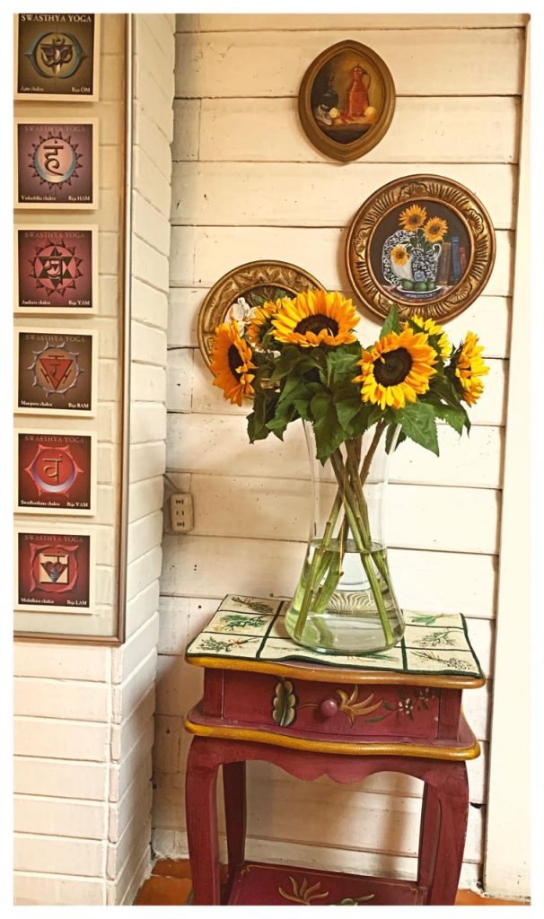 1. Bhavan pújá: agradecimiento a la sala de práctica que acoge a los practicantes. El lugar de la práctica se considera sagrado y se trata con gran respeto y cuidado, ya que se cree que se impregna de energías positivas a través de las prácticas regulares y los pújás realizados allí. La reverencia hacia la sala no solo refleja el respeto por el espacio físico sino también por la comunidad de practicantes que comparten y crecen en dicho entorno, reforzando la conexión entre los individuos y el ambiente que los rodea, cargado de positividad y propicio para el desarrollo personal.